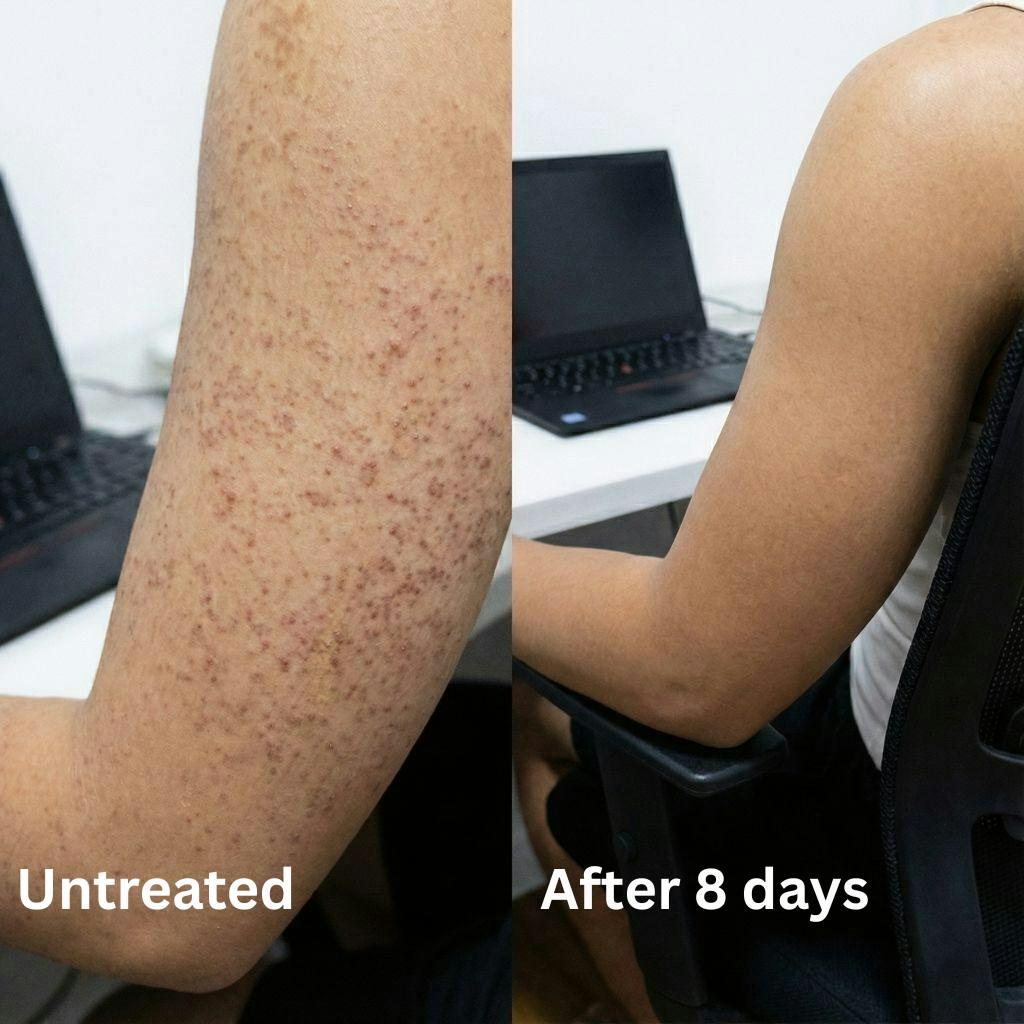 I originally got this for the rough, bumpy texture on my arms. After about 10 days, my skin is noticeably smoother and more even. The redness has gone down a lot, and it actually feels normal to the touch now.