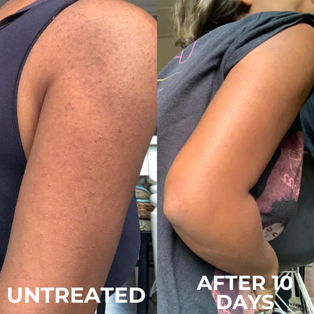 Most users report noticeable improvement in skin texture within 2-4 weeks of consistent use, with significant reduction in both bumps and redness by 8 weeks. Individual results may vary depending on KP severity, consistency of application, and individual skin biology.